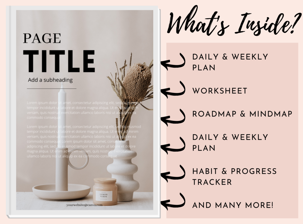 ♡ PDF with link to templates on Canva. There are bundle of 90 editable & reusable e-book templates with US letter size in there. You will need basic knowledge of Canva to edit these templates.